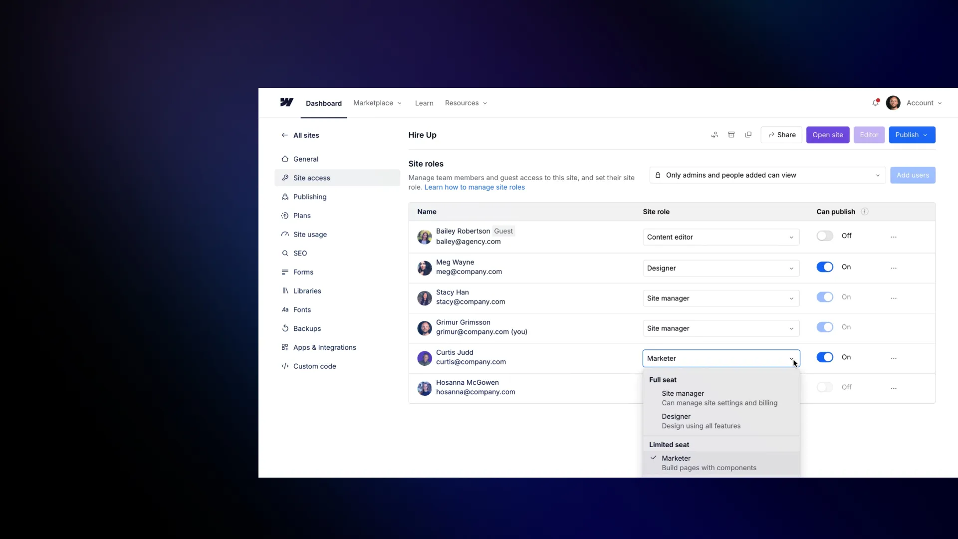 Comments allow you to streamline your team’s communication so you can build and iterate on your designs faster. Workspace members and guests can share, review, and resolve feedback without ever leaving the Webflow Designer.